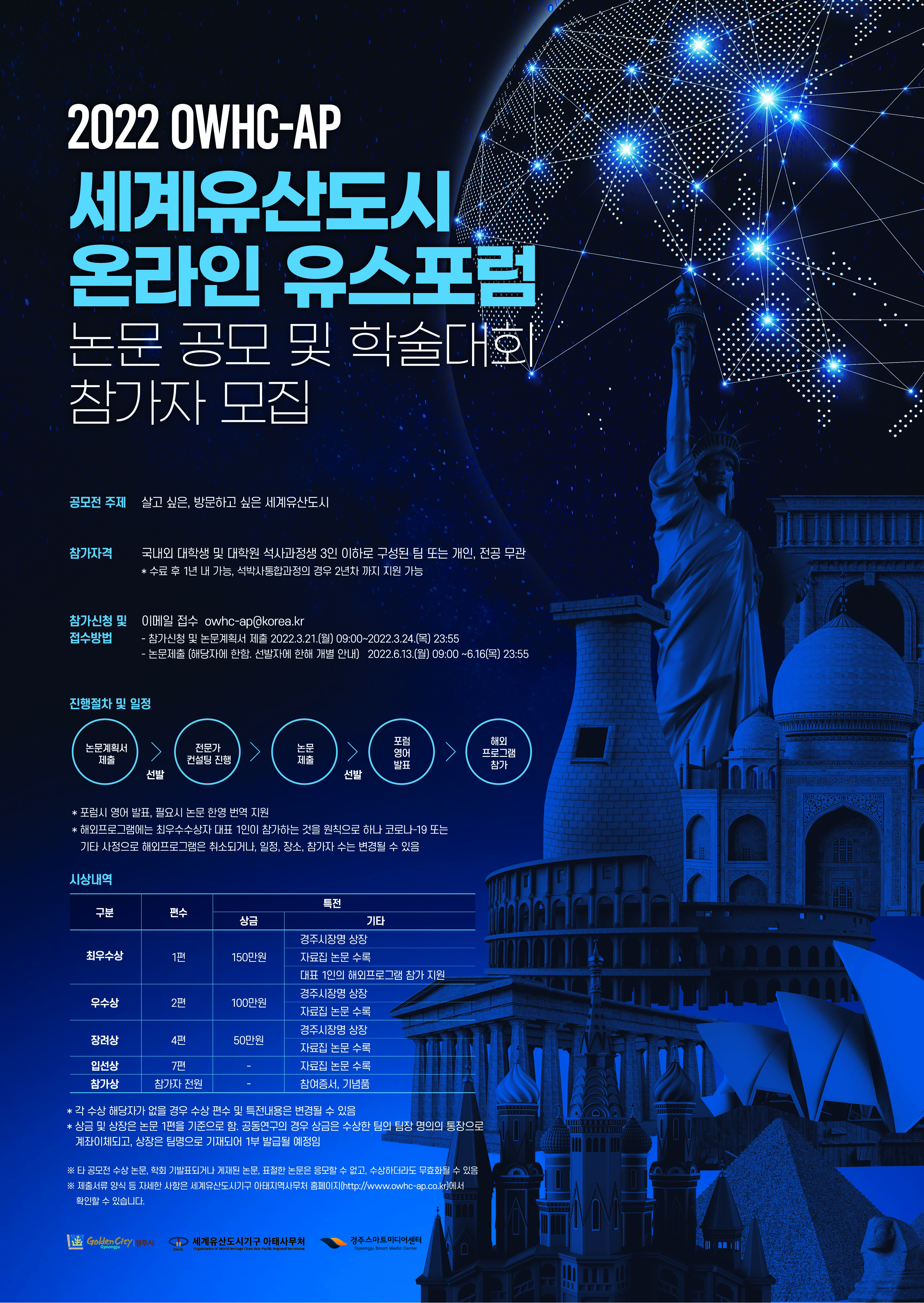 2022 세계유산도시 온라인 유스포럼 논문 공모 및 학술대회 참가자 모집